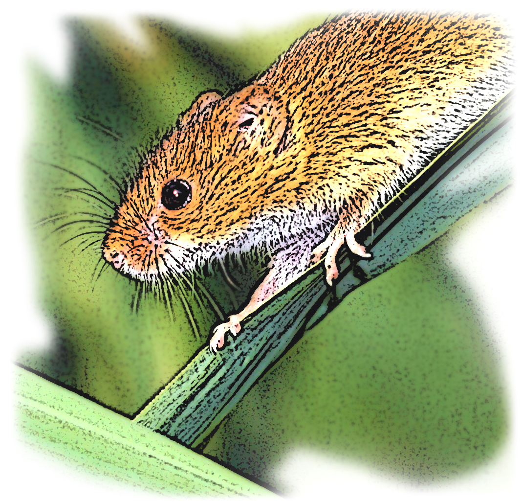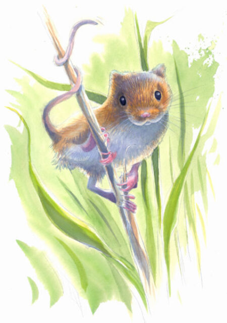 La Souris des laîches (Rat des moissons – Micromys minutus) est le plus petit rongeur d’Europe et comme son nom l’indique, elle se déplace en jouant à l’équilibriste entre les hautes herbes des marais où elle va également construire de petits nids caractéristiques.