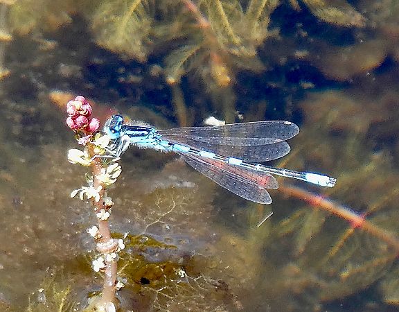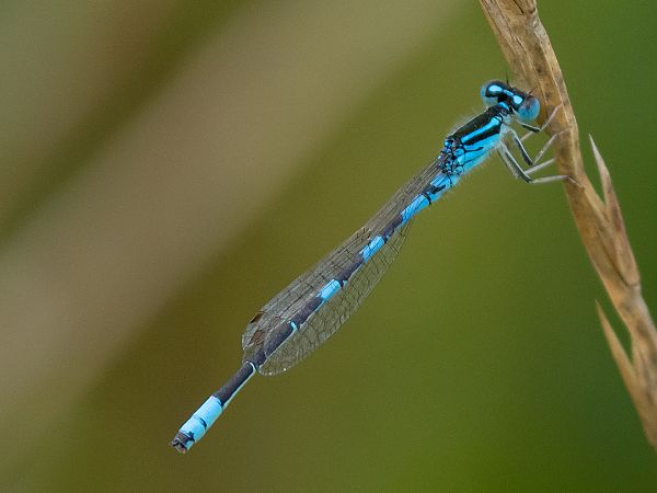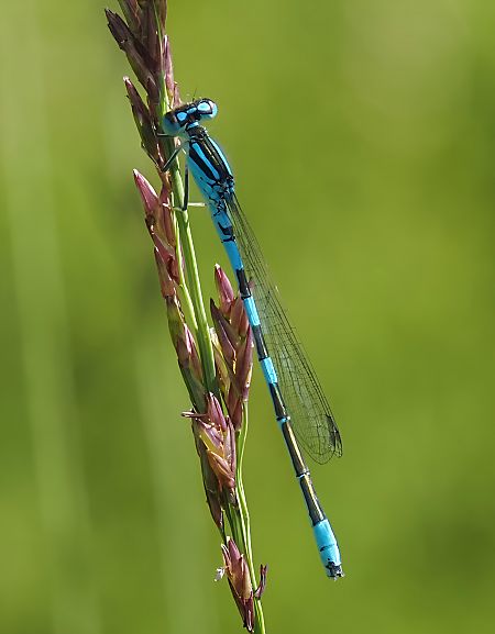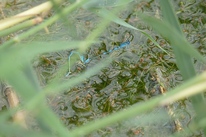 Durant toute la belle saison, cette délicate demoiselle rayée de turquoise demeure à proximité de la végétation de l’étang. Vous pourrez l’approcher facilement dans la fraicheur du matin, avant son éveil.