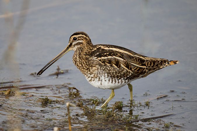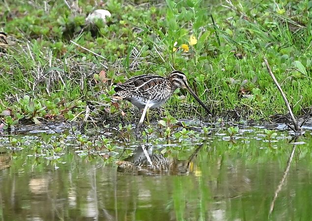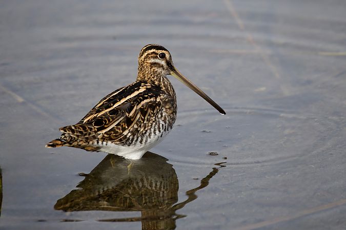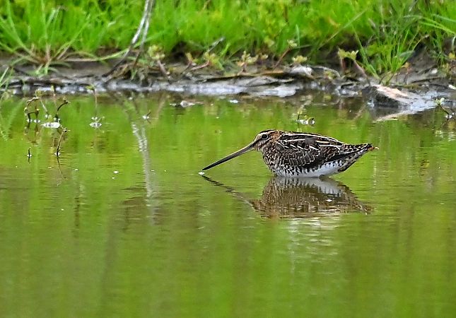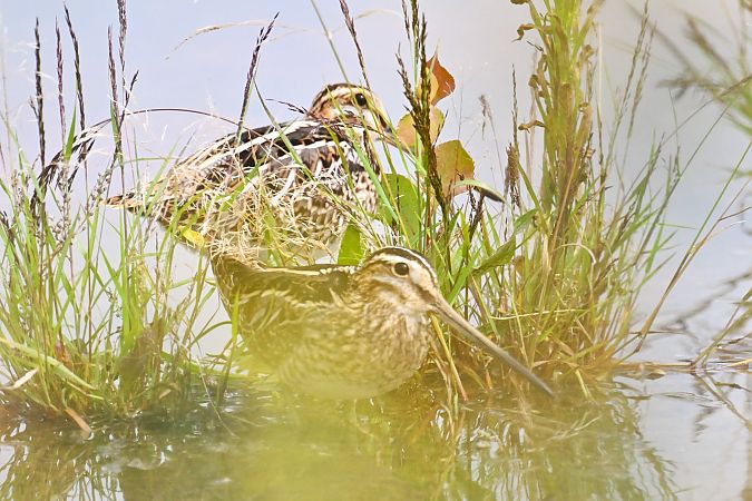 C’est en bordure des étangs que vous surprendrez peut-être cet oiseau au bec interminable. Injustement persiflée pour sa confiance naïve, la bécassine se fie à son camouflage, ne s’envolant qu’au dernier moment.