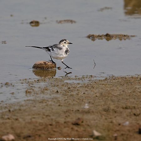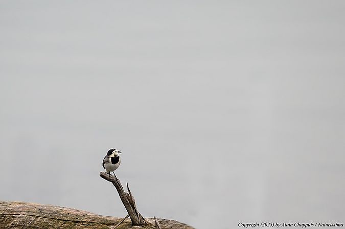 La bergeronnette grise est un des rares oiseaux à porter un masque blanc. Ce petit coureur des rivages se reconnaît facilement à ses mouvements de queue frénétiques, une habitude qui lui valait autrefois le nom d’hochequeue.