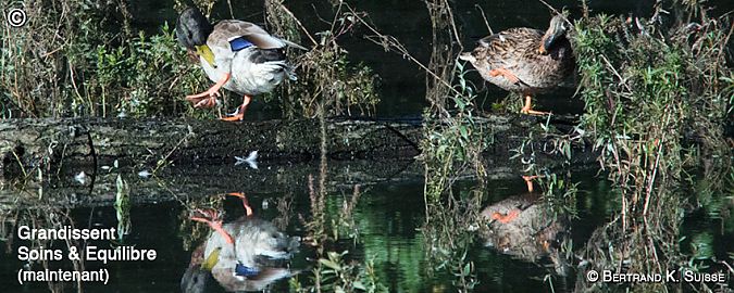 Il est si facile à observer qu’on en oublierait la beauté resplendissante de son plumage. Dès la fin du printemps, les belles couleurs du mâle s’estompent pour privilégier la discrétion car les canards en mue sont alors incapables de voler.