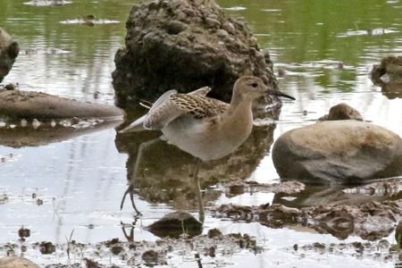 Vite, vite, les Combattants variés semblent pressés au printemps de rejoindre leur terrain de joute du nord de l’Europe. Durant leur escale, ils vous laisseront entrapercevoir leur costume de noce, pas encore tout à fait prêt, qui transformera bientôt les mâles en folies de plumes bouffantes et bariolées.