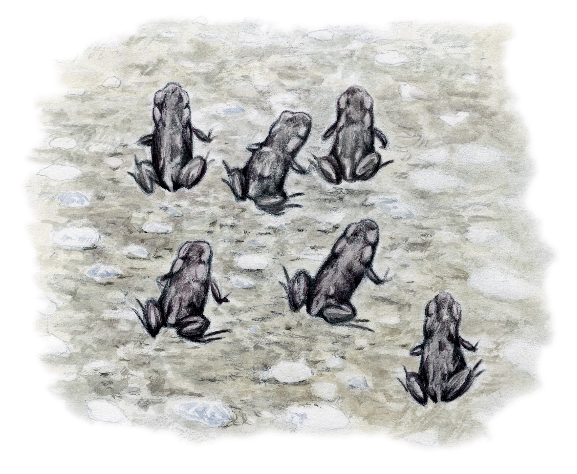 À la fin du mois de juin, vous pourrez peut-être assister à un spectacle insolite : les têtards tout juste métamorphosés en tout petits crapauds quittent leur étang natal, formant certaines années des rassemblements spectaculaires.