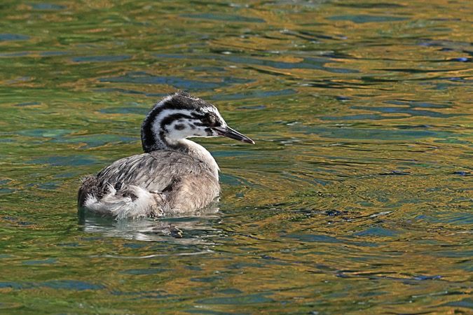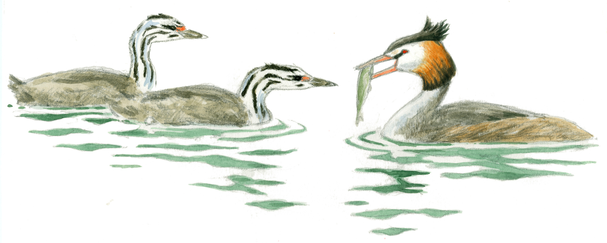 Bien souvent contraint, faute de place, à nicher entre les cordages des bateaux – où son nid est strictement protégé par la loi – le Grèbe huppé retrouve dans les roselières son habitat naturel. Avec un peu de chance vous apercevrez ses poussins, rayés comme des zèbres.