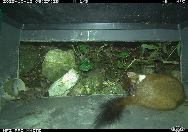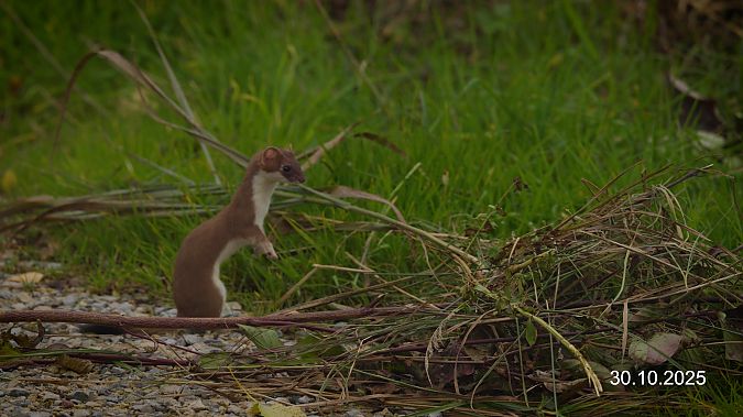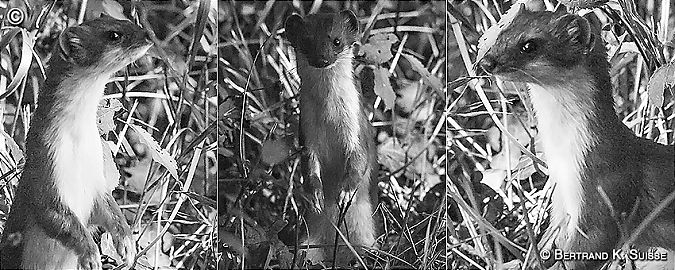 Brune ou blanche selon les saisons, l’Hermine se reconnaît à sa queue toujours noire. Avec un peu de chance – notamment après la chute des feuilles – vous croiserez son chemin lorsqu’elle file au ras du sol.