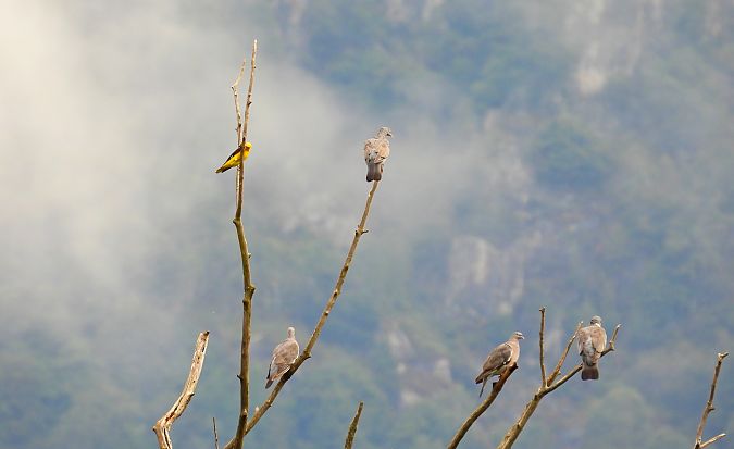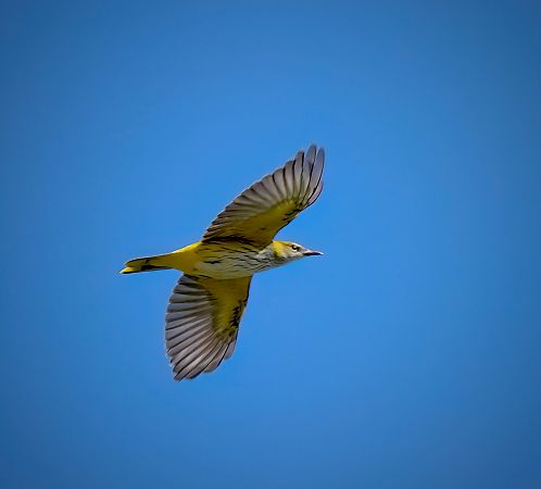 Discret malgré la couleur jaune d’or du mâle, cet oiseau inféodé aux cimes des arbres révèle parfois sa présence lorsqu’il survole une clairière. Son chant stridulant et fluté est très facile à reconnaître.