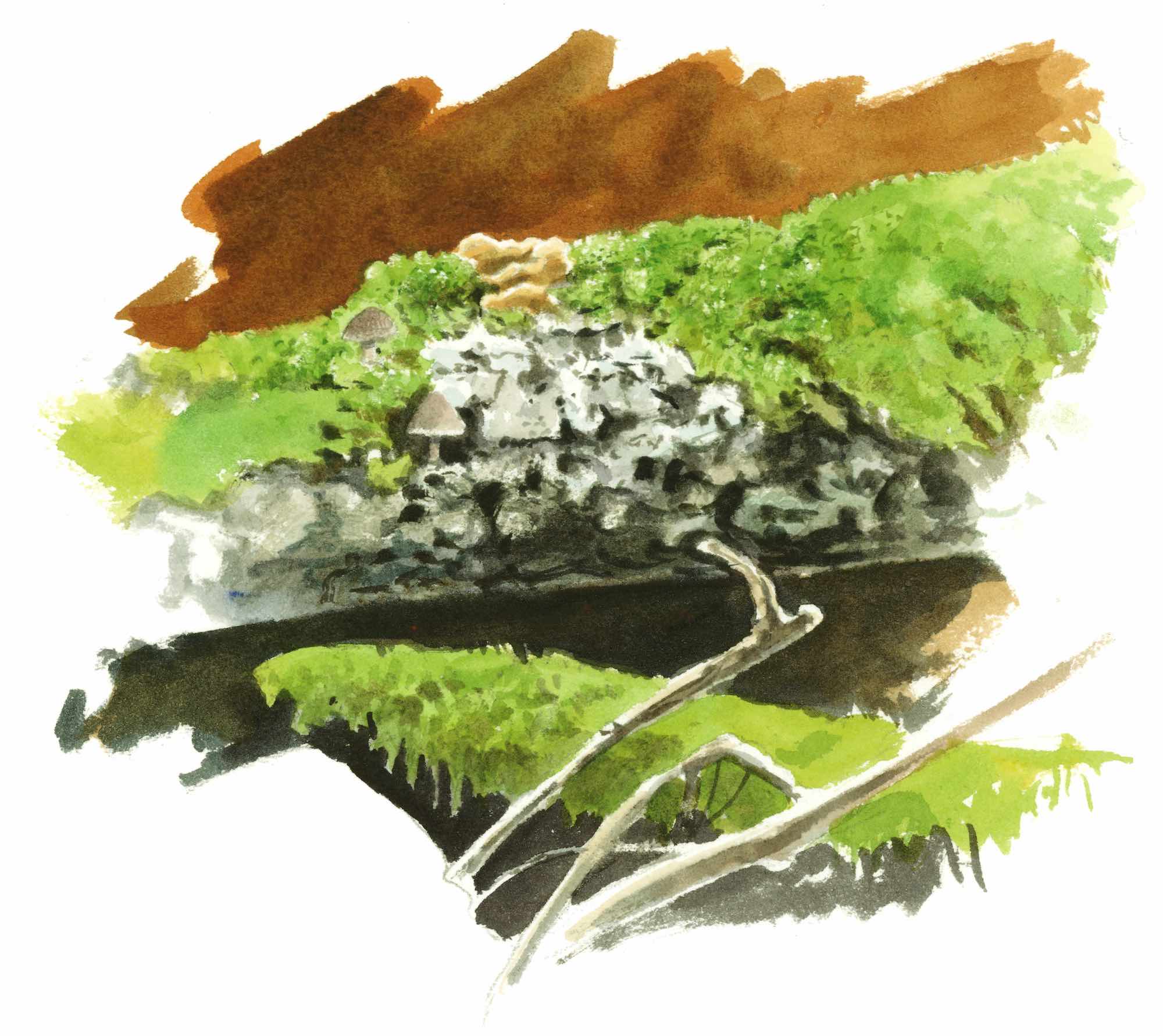 Les mousses sont des plantes minuscules qui n’abîment pas les arbres (ni les murs). Eponges remarquables, elles absorbent l’eau des grosses averses pour la restituer petit à petit. Elles empêchent ainsi l’érosion des sols et fournissent de l’humus. Observées à la loupe, elles révèlent une grande diversité de formes.