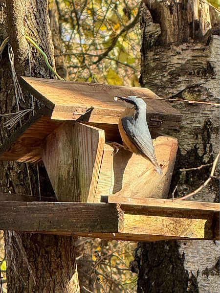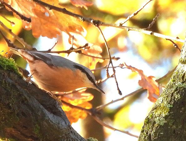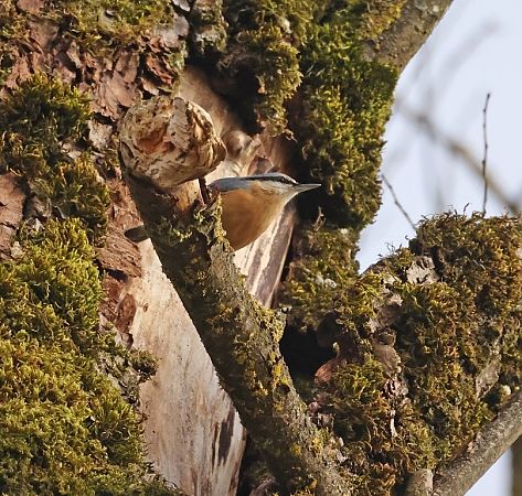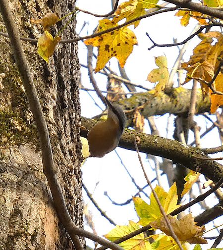 Présente toute l’année, la sittelle trouve sa nourriture en explorant l’écorce des grands arbres. Cette acrobate est aussi à l’aise en grimpant qu’en descendant la tête en bas !