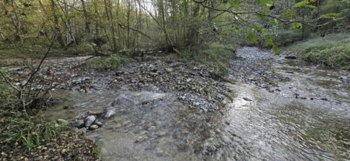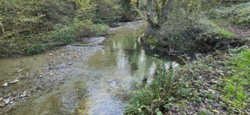 A plusieurs endroits, bloqué par la végétation, la rivière doit méandrer et ce faisant, son énergie a creusé des profondeurs, où les poissons – surtout des chevaines, mais aussi le rare blageon – adorent se reposer. Avec un peu de patience, vous les apercevrez dans l’eau cristalline.