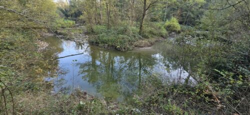 - Les secteurs calmes de la rivière, qui servent d’abris privilégiés aux poissons durant l’étiage, et où vous avez des bonnes chances de les observer.