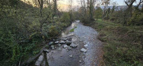 Ce pont étroit, qui convient mieux à la mobilité douce qu’aux automobiles, donne un bel aperçu de la rivière qui fera l’objet de notre balade. On retrouve l’eau de la fontaine de Sézegnin qui se jette dans la rivière juste à l’aval… et peut-être une bergeronnette longeant les rives.
