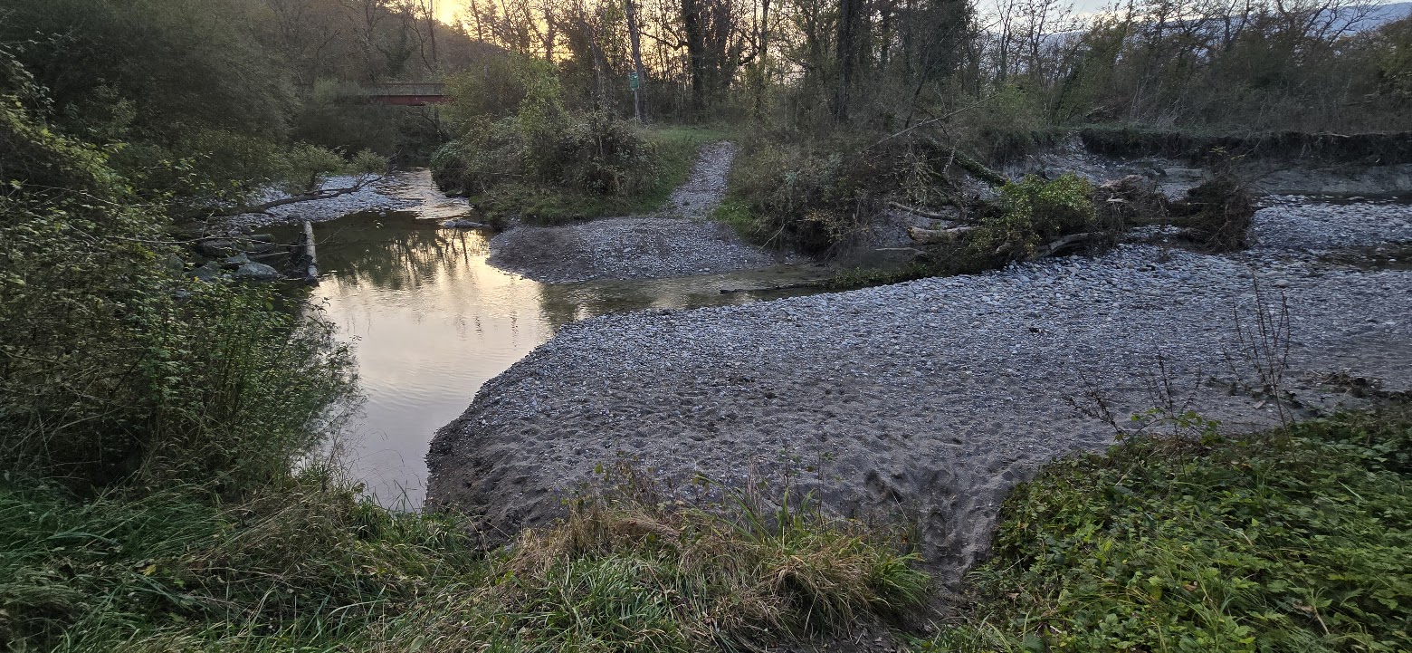 Cette énorme plage de galet et de sable déposé par la rivière invite à la détente… et à l’émerveillement : la rivière a déposé plus de 30 cm de sédiments finement triés !