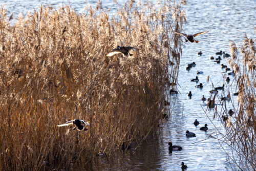 Vu les rassemblement d’oiseaux ici en hiver, l’animation est au rendez-vous : pas une minute sans observer l’atterrissage d’un vol de canard ou le décollage bruyant d’un grand cormoran.