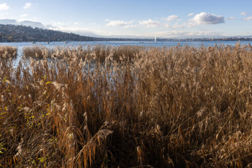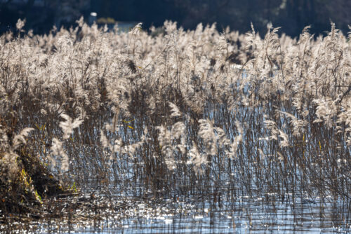 En hiver, la roselière de la Pointe-à-la-Bise offre un magnifique spectacle de jeux de lumière.