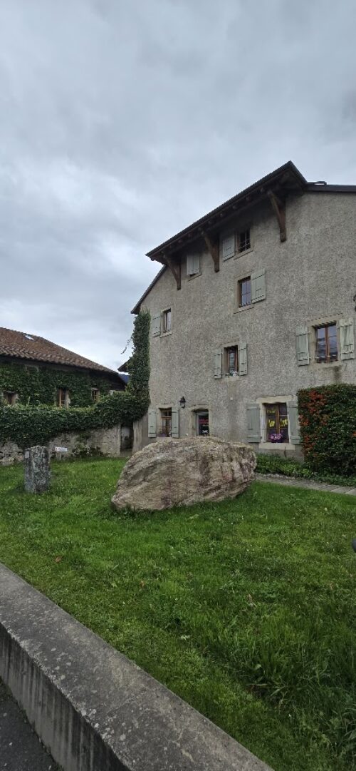 C’est à proximité de la rivière qu’a été découverte un des plus intriguant témoignage des premières activités humaines dans la région, la fameuse « Pierre-aux-dames », un menhir de granit de trois tonnes, vieux de près de 5’000 ans, avec ses 4 intrigantes silhouettes féminines sculptées dans la roche. Si l’original a été placé à l’abri dans la cour du Muséum d’Art et d’Histoire en 1942, un fac-similé en fibre de verre, très fidèle, est exposé devant la Mairie depuis 1998.