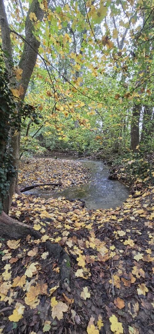Quoi de plus ennuyant qu’une rivière qui coule tout droit, surtout si ce sont les humains qui l’ont canalisée! Ici, au contraire, les arbres obligent la rivière à se contorsionner en une succession de petits virages, pour notre plus grand plaisir visuel et auditif, multipliant les micro-habitats intéressants pour la petite faune.