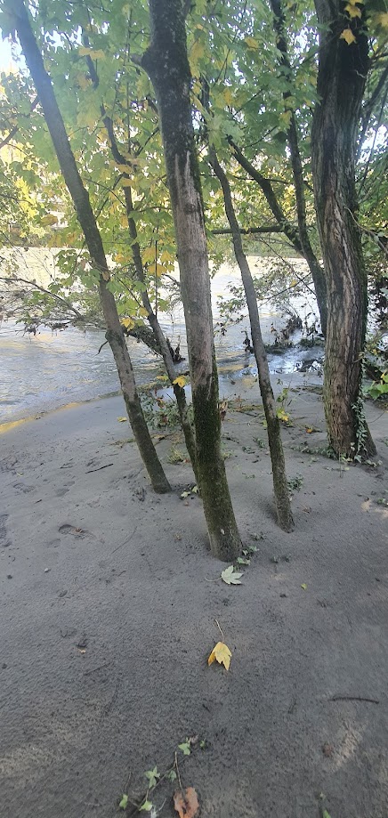 Les forêts riveraines évoluent avec les crues des rivières. Régulièrement inondées, elles sont livrées aux courants qui balaient les feuilles mortes et le sol mais laissent en échange de nombreux sédiments. Ici les grandes crues de 2023 ont déposé des tonnes de limons sablonneux venus des Alpes, créant un habitat original et propice à la lecture des traces des animaux sauvages : peut-être relèverez-vous le passage d’une fouine?