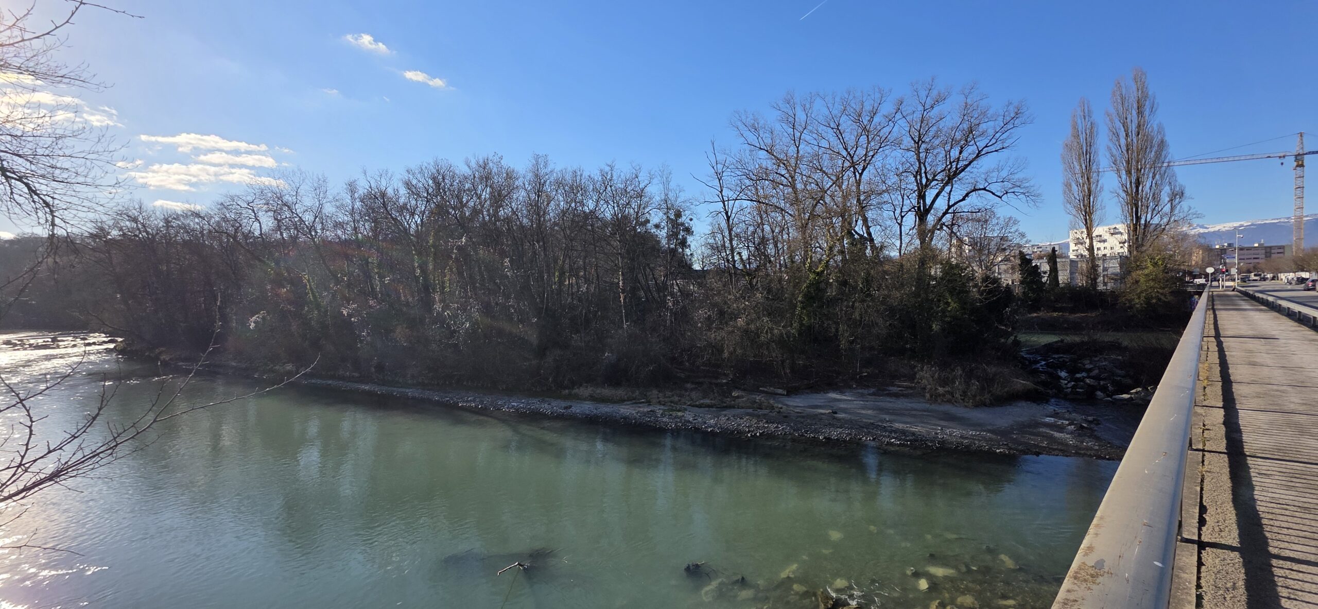 En amont du pont des Acacias, de larges bancs de gravier et de limons émergent la majeure partie de l’année, attirant mouettes, goélands, corneilles… et promeneurs!