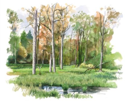 La prairie située au centre des zones humides abrite aussi des espèces végétales d’intérêt, comme le trèfle de montagne et le genêt d’Allemagne. Ce milieu ouvert offre des conditions propices au phanéroptère commun, une sauterelle menacée.