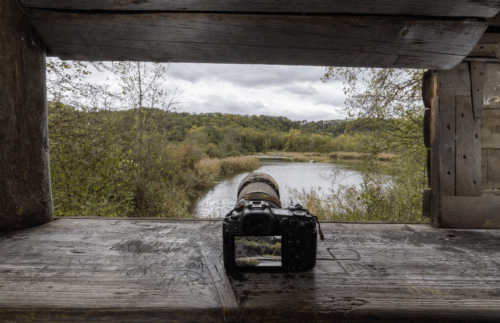 Voici un aperçu de la vue magnifique que l’on peut contempler depuis l’affût Robert Hainard : une fenêtre ouverte sur la nature qui offre des moments de quiétude et d’émerveillement.