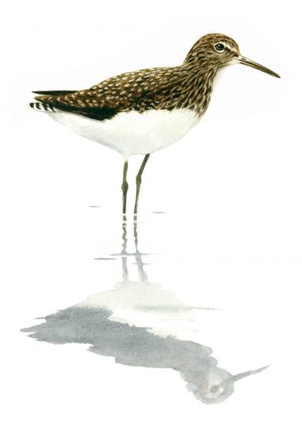 Ce petit échassier nichant dans le nord de l'Europe s'arrête parfois dans les marais forestiers durant sa migration estivale. Voir la carte des observations à Genève.